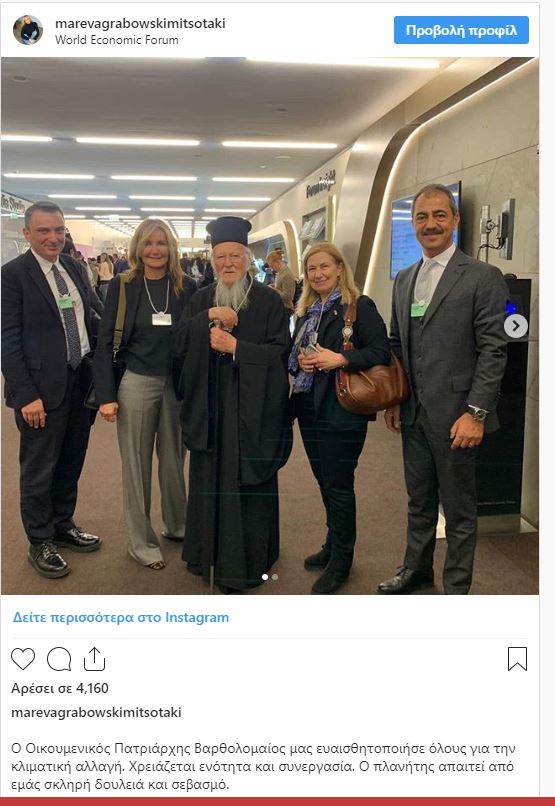 Ολιγόλεπτη συνάντηση με την Α.Θ.Π. τον Οικουμενικό Πατριάρχη, κ.κ. Βαρθολομαίο, είχε στο Νταβός, η σύζυγος του Πρωθυπουργού κ. Μαρέβα Μητσοτάκη – Γκραμπόφσκι.