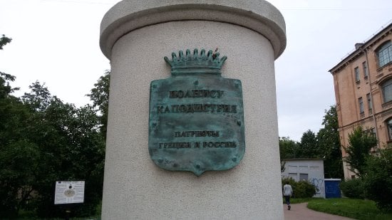 «Το 2003 στην Eλληνική πλατεία της Αγίας Πετρούπολης, όπου ζούσε ο Ιωάννης Καποδίστριας, εγκαινιάστηκε το μνημείο του. Δήμαρχος τότε ήταν η Βαλεντίνα Ματβιένκο, πρώην Πρέσβης στην Αθήνα και νυν Πρόεδρος της Γερουσίας της Ρωσίας.