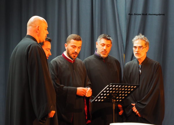 Η Βυζαντινή χορωδία του Πρωτοψάλτου Ιωάννη Βαζούρα έψαλε μια επιλογή των ” Καταβασιών του Πάσχα ” και το απολυτίκιο του Αγίου Μαξίμου του Ομολογητού.