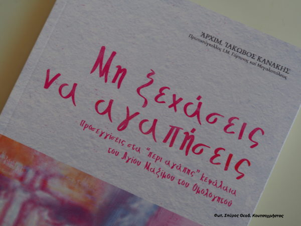 Ο Σεβασμιώτατος στον εισαγωγικό χαιρετισμό του, ανέφερε μεταξύ άλλων… “ότι η αγάπη είναι η κορωνίδα των αρετών και το κύριο χαρακτηριστικό των παιδιών του Θεού… Αυτό το βιβλίο, το επεξηγηματικό από του λόγους του Οσίου Μαξίμου του Ομολογητού ( 580 – 662 μ.Χ. ) ” περί αγάπης “, είναι μια ευκαιρία να εντρυφήσουμε σε αυτά τα κεφάλαια” και ευχαρίστησε τον π. Ιάκωβο, για την συγγραφή αυτού του σπουδαίου βιβλίου .