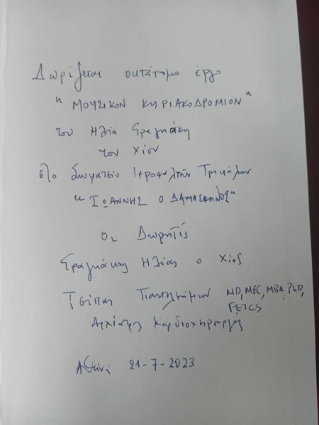 Ο κ. Παντελής Τσίπας χθες είχε συνάντηση με τον πρόεδρο του Σωματείου κ. Αθανάσιο Δημητρίου, όπου συζήτησαν για τις επικείμενες δράσεις του Σωματείου, του ευχήθηκε καλή επιτυχία στις αυτοδιοικητικές εκλογές και δώρισε για τη βιβλιοθήκη του Σωματείου το οκτάτομο έργο του Ηλία Φραγκάκη “ΕΓΚΟΛΠΙΟΝ ΙΕΡΟΨΑΛΤΟΥ ΜΟΥΣΙΚΟΝ ΚΥΡΙΑΚΟΔΡΟΜΙΟΝ”