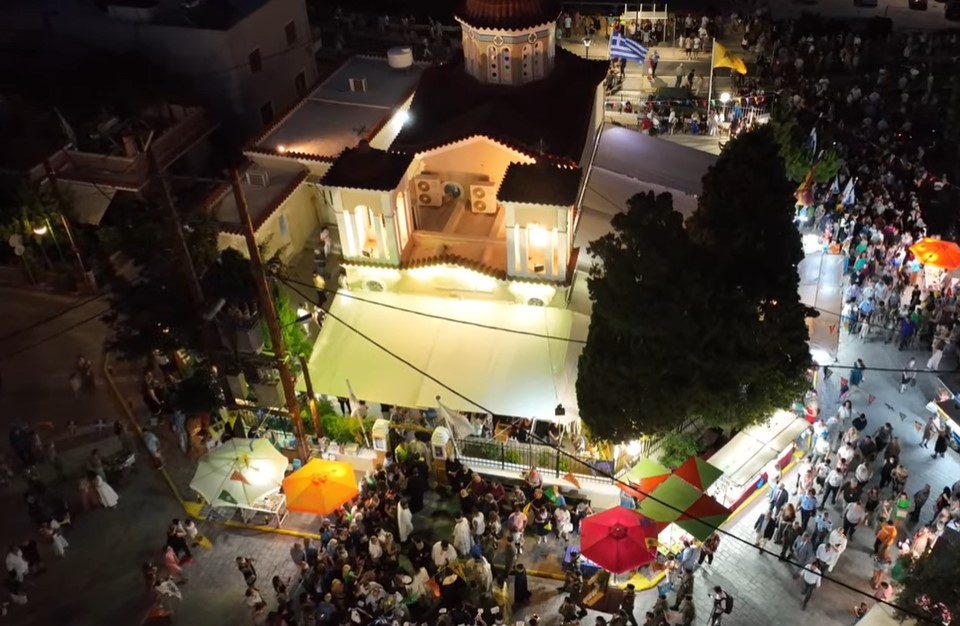 Ο καπετάνιος Βαγγέλης Δημητρακάκης έφερε το αρχοντοβάπορο της Hellenic Seaways μία ανάσα από το αλιευτικό καταφύγιο της Αγίας Παρασκευής και απέδωσε τιμές με συνεχόμενους συριγμούς και πλήθος βεγγαλικών, υπό τους ήχους των καμπανοκρουσιών του Ιερού Ναού.