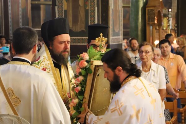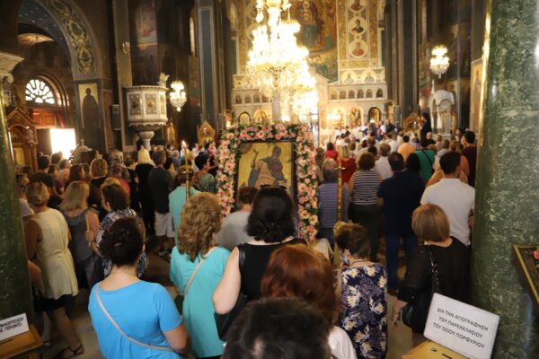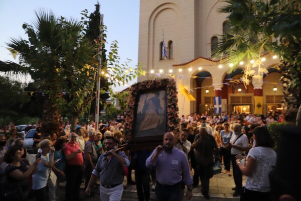 Στο τέλος του εσπερινού, πραγματοποιήθηκε λιτάνευση της Ιεράς Εικόνας του τιμώμενου Προφήτη στους δρόμους της ενορίας.