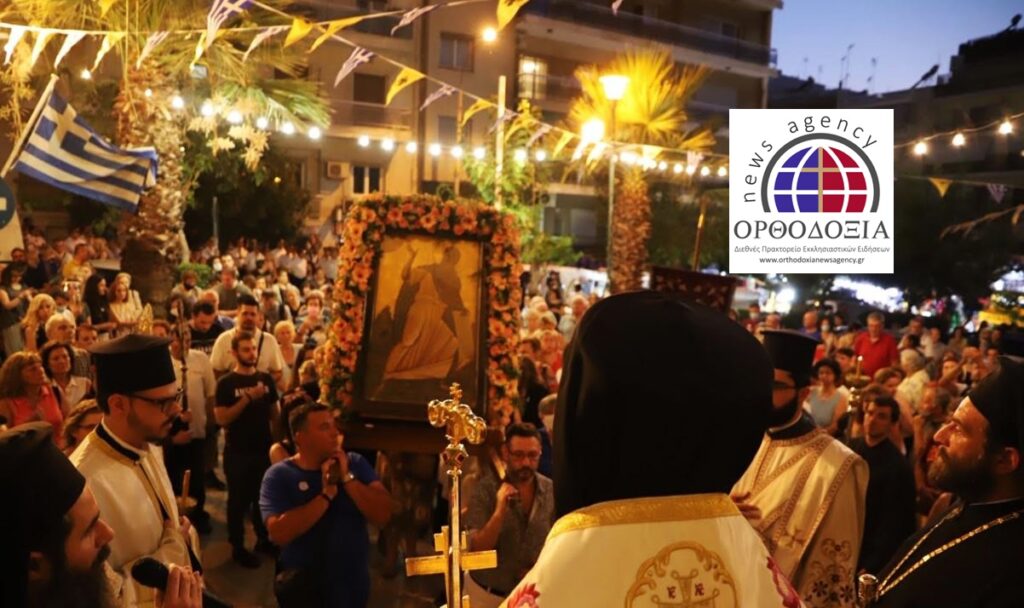 Στο τέλος του εσπερινού, πραγματοποιήθηκε λιτάνευση της Ιεράς Εικόνας του τιμώμενου Προφήτη στους δρόμους της ενορίας.