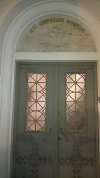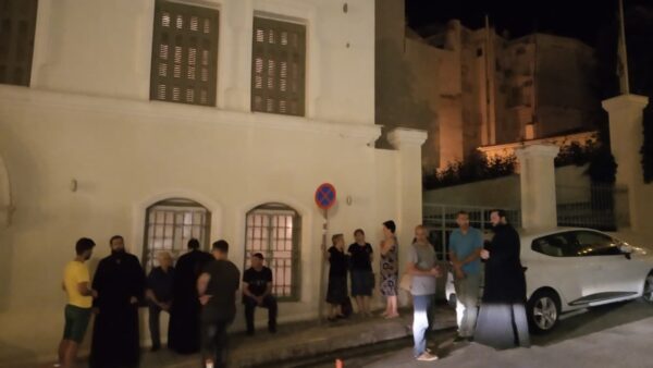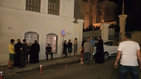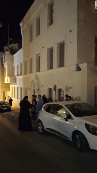 Η πόρτα σφραγισμένη αλλά κληρικοί και λαϊκοί συνομιλούν με όποιον έχει να τους δώσει κάποια πληροφορία.