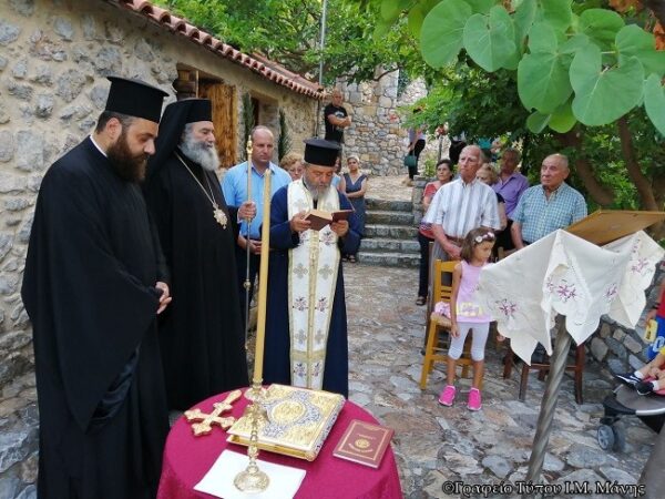 Ο Σεβ. Μητροπολίτης Μάνης κ. Χρυσόστομος μετέβη, χθές 3 Αυγούστου 2020, στο χωριό Μέλισσα Σμήνους και στον ωραίο Ι.Ν. Αγίων Πάντων, όπου τελέσθηκε η Ιερά Ακολουθία του Παρακλητικού Κανόνα της Υπεραγίας Θεοτόκου με την συμμετοχή πλήθους πιστών.