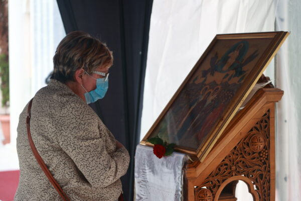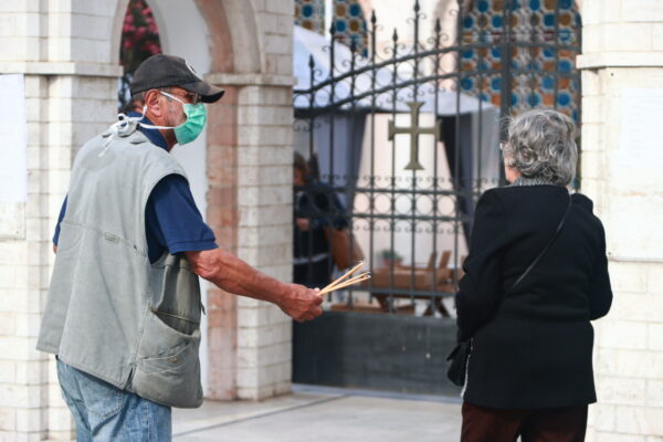Πιστοί λαμβάνοντας όλα τα μέτρα ασφαλείας προσέρχονται για να τιμήσουν την εορτή της Αναλήψεως του Κυρίου ενώ δεν είναι λίγοι αυτοί που βρίσκονται εκτός ναού. Ας σημειωθεί ότι με υποδειγματική συνέπεια οι προσερχόμενοι πιστοί εκτελούν τις οδηγίες των αρμόδιων επιτροπών για τη σωστή τήρηση των μέτρων.