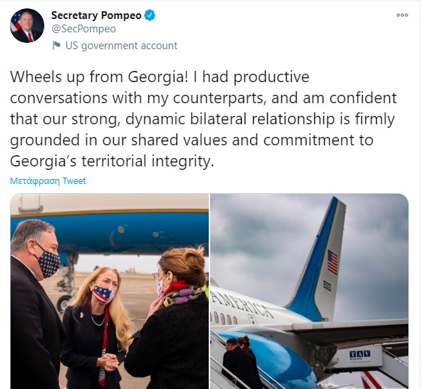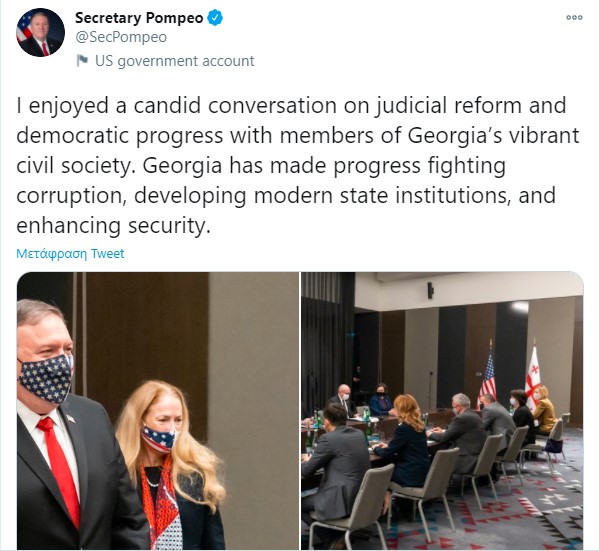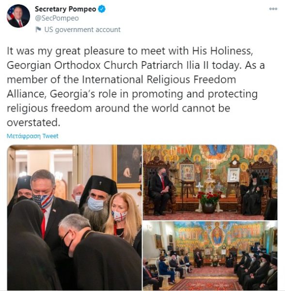 Το τουίτ του Πομπέο για την συνάντηση με τον Πατριάρχη Γεωργίας