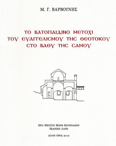 Το βιβλίο του κ. Μανόλη Γ. Βαρβούνη με τίτλο “Το Βατοπαιδινό Μετόχι του Ευαγγελισμού της Θεοτόκου στο Βαθύ της Σάμου” μπορείτε να προμηθευτείτε από το σύνδεσμο που παρατίθεται παρακάτω. Το βιβλίο με αριθμό σελίδων 184 έχει εκδοθεί από την Ιερά Μεγίστη Μονή Βατοπαιδίου και τις εκδόσεις Αλόη στο Άγιον Όρος το 2010.