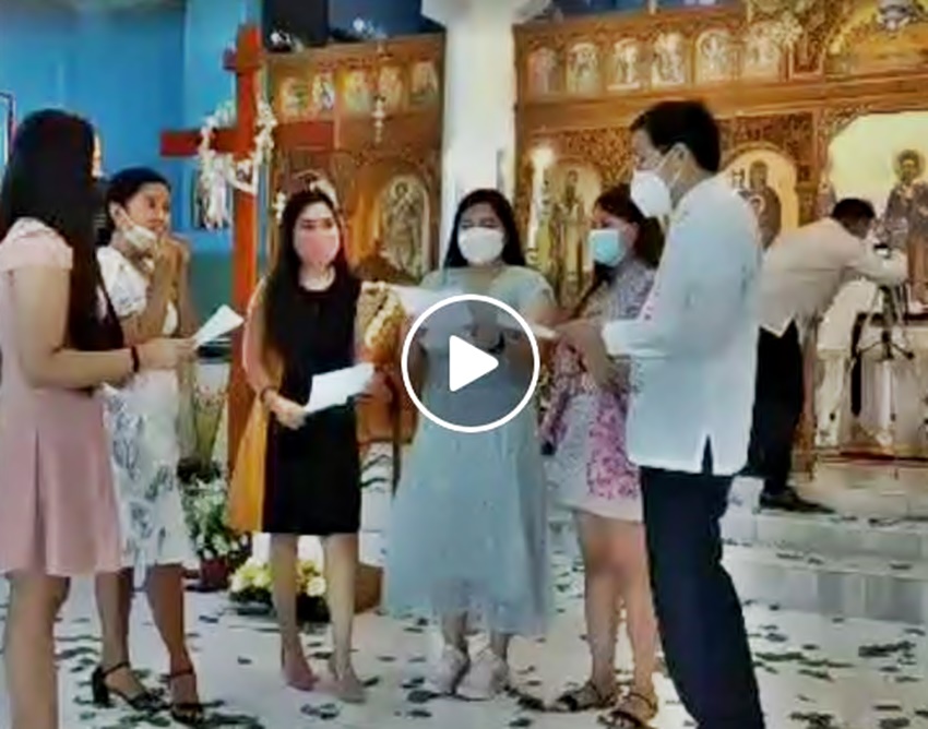 Το Χριστός Ανέστη στα Ελληνικά, Αγγλικά, Ταγκάλογκ, Ρουμανικά και Σλαβονικά από την χορωδία στον Ορθόδοξο Ναό Ευαγγελισμού της Θεοτόκου στο Παρανάκε, Μανίλα, Φιλιππίνες.