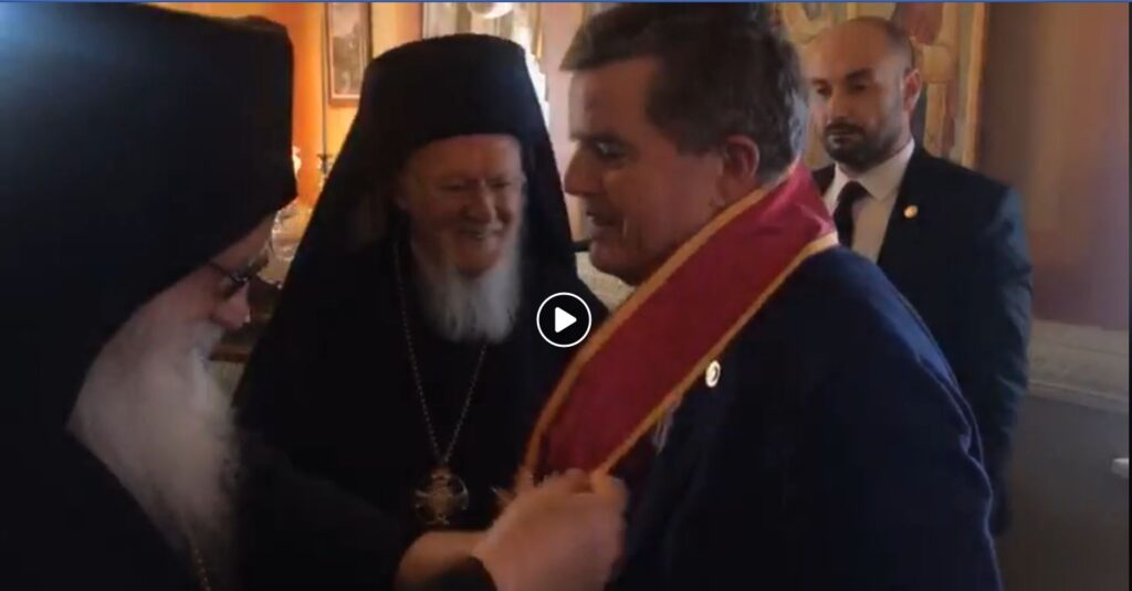 Τον νέο Πολιτικό Διοικητή του Αγίου Όρους κ. Αθανάσιο Μαρτίνο βράβευσε πριν από λίγη ώρα ο Οικουμενικός Πατριάρχης κ.κ. Βαρθολομαίος που βρίσκεται από χθες στην Αθωνική Πολιτεία.