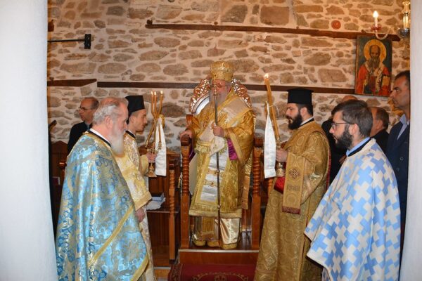 Μετά την ανάγνωση του Ευαγγελίου, ο Σεβασμιώτατος Ποιμενάρχης εκήρυξε το Θείο Λόγο προς το πυκνό εκκλησίασμα αναφερόμενος επί της εορτής των Παμμεγίστων Ταξιαρχών.