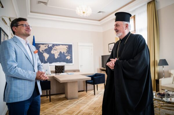 Συνάντηση σε θερμό κλίμα πραγματοποιήθηκε χθες το απόγευμα στο Κίεβο ανάμεσα στον Σεβασμιώτατο Μητροπολίτη Γαλλίας κ. Εμμανουήλ και τον Εξοχώτατο Υπουργό Εξωτερικών της Ουκρανίας κ. Dmytro Kuleba. Στη συνάντηση παρόντες ήταν επίσης ο Υφυπουργός Εξωτερικών κ. Vasily Bodnar και ο Πανιερώτατος Αρχιεπίσκοπος Τσερνιχίβ και Νιζχίν κ. Ευστράτιος.