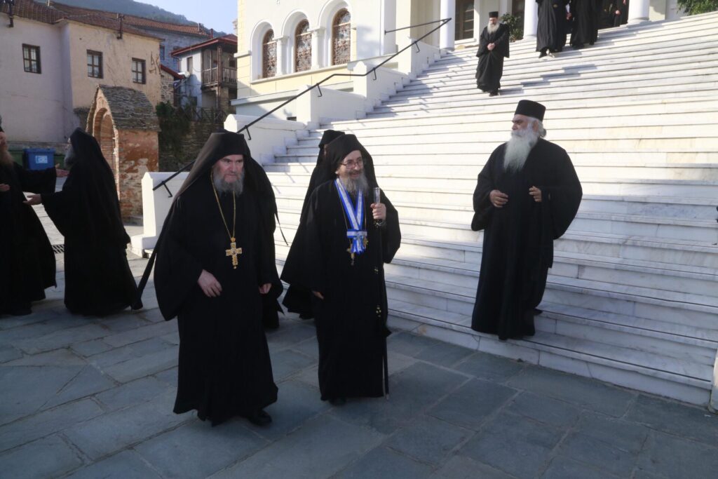 Προσήλθαν οι Καθηγούμενοι Μέγιστης Λαύρας Πρόδρομος, Βατοπαιδίου Εφραίμ, Δοχειαρίου Αμφιλόχιος, Χιλανδαρίου Μεθόδιος, Κουτλουμουσίου Χριστόδουλος, Φιλοθέου Νικόδημος, Εσφιγμένου Βαρθολομαίος, Διονυσίου Πέτρος, Σταυρονικήτα Τύχων, Γρηγορίου Χριστόφορος, Σίμωνος Πέτρας Ελισσαίος, εκπρόσωποι της Μονής Ξηροποτάμου και της Μονής Αγίου Παύλου και η Αθωνιάδα Σχολή.