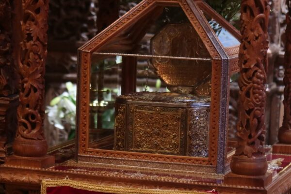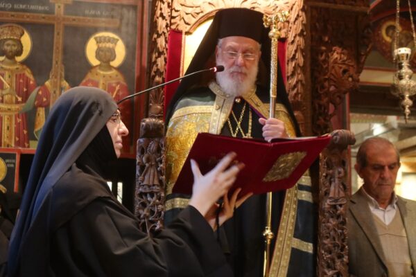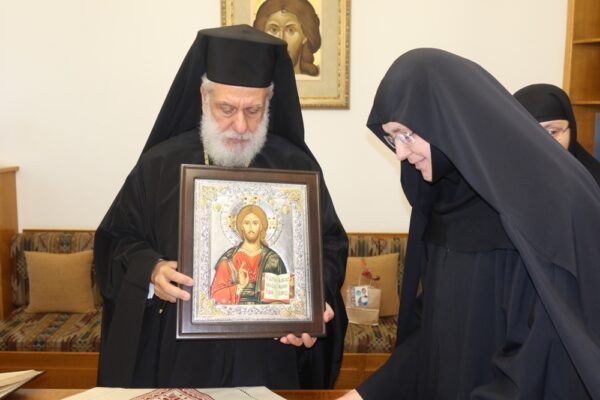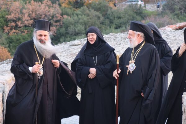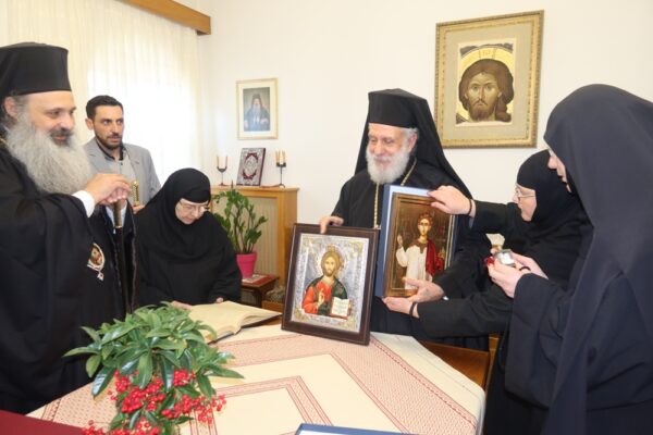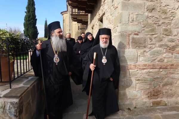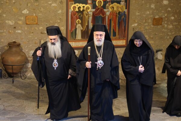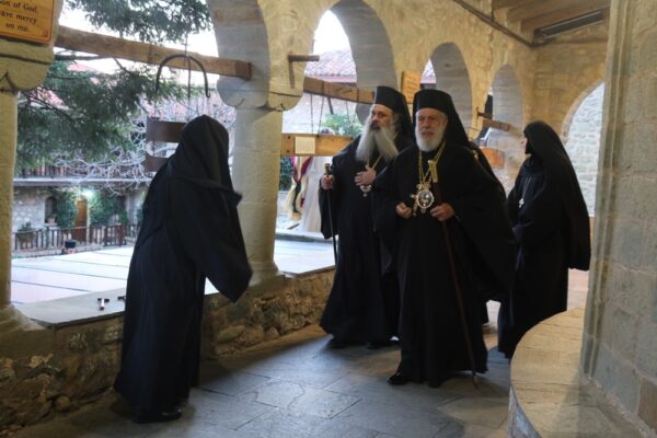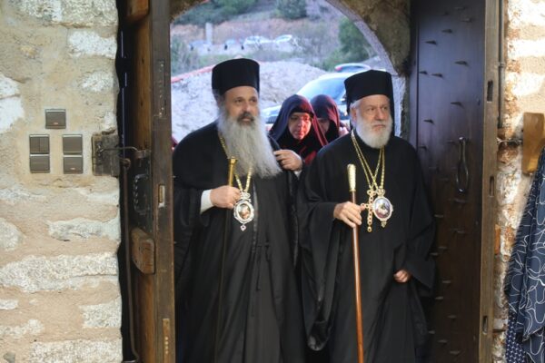 Μετά το πέρας της Θείας Λειτουργίας, παρετέθη Μοναστηριακή δοχή και ακολούθησε ξενάγηση του Σεβασμιωτάτου κ. Δωροθέου Β΄ στο κτιριακό συγκρότημα της Μονής και στο υπό συντήρηση παλαιό Καθολικό της.