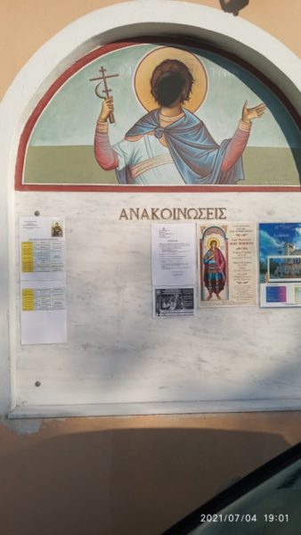 Σύμφωνα με πληροφορίες του ope.gr, το Ψυχοσάββατο προ της Πεντηκοστής (19/6/2021), μεταξύ 6:00 και 6:30 το πρωί, άγνωστος με κράνος και μαύρα ρούχα εισέβαλε στο χώρο του ναού να συλήσει τις ιερές εικόνες. Ο δράστης καταγράφηκε από κλειστό κύκλωμα ασφαλείας να βάφει με σπρέι, όπως θα δείτε και στις φωτογραφίες που δημοσιεύουμε, τα πρόσωπα στις αγιογραφίες. Ένα σπρέι, που πολύ δύσκολα φεύγει, με αποτέλεσμα να προκληθεί τεράστια ζημιά στις μορφές του Χριστού, της Παναγίας, των Αρχαγγέλων και του Αγίου Τρύφωνος…
