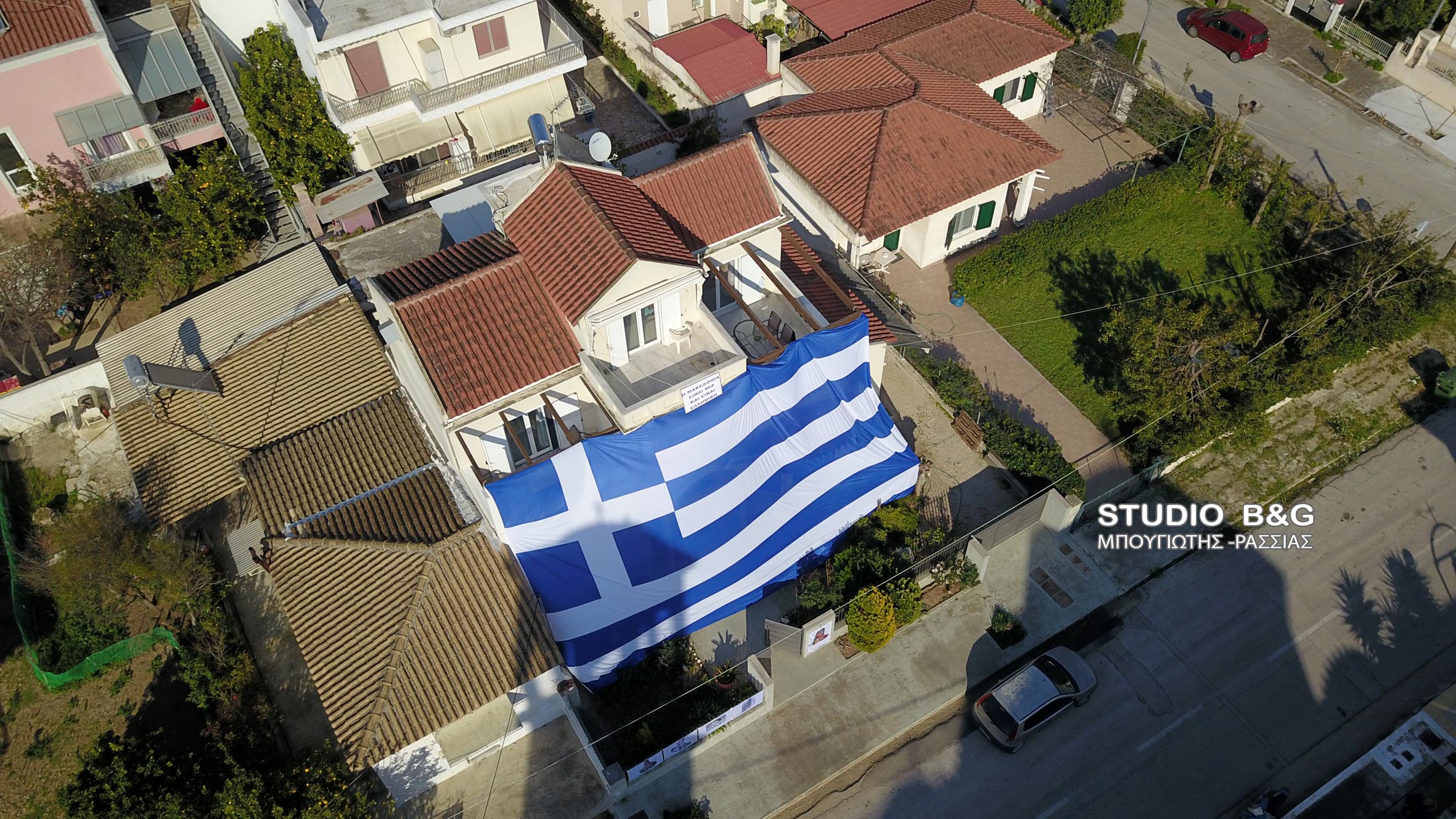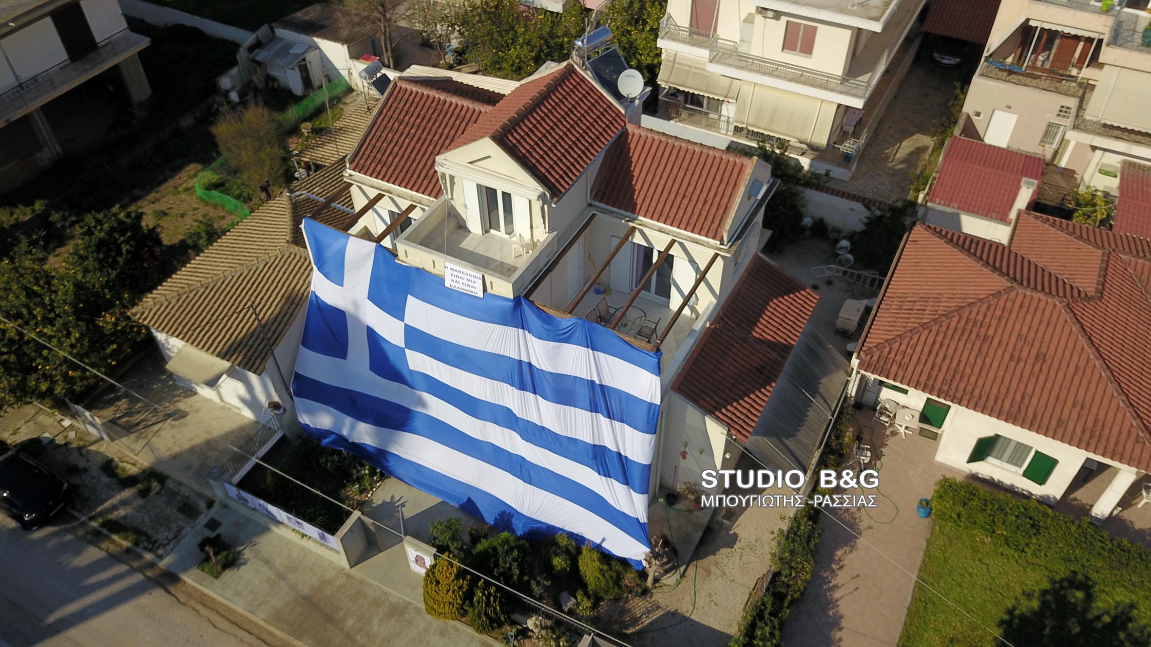 Με μία τεράστια Ελληνική Σημαία κάλυψε το σπίτι του ένας κάτοικος της Νέας Κίου του Δήμου Άργους Μυκηνών στην Αργολίδα, κατά το Σάββατο 23 Μαρτίου 2019.