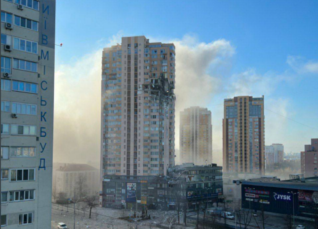 Οι αρχές του Κιέβου ανέφεραν πως ένας πύραυλος έπεσε σε κτίριο κατοικιών και σύμφωνα με αυτόπτη μάρτυρα του Reuters ένας άλλος έπληξε μια περιοχή κοντά στο αεροδρόμιο. Προσώρας δεν υπάρχουν πληροφορίες για απώλειες.