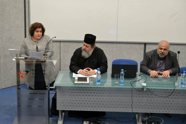 Ο αναπληρωτής Καθηγητής Βυζαντινής Μουσικολογίας ΕΚΠΑ, Δημήτριος Μπαλαγεώργος ο οποίος είναι επιστημονικός συνεργάτης του Ευρωπαϊκού Πανεπιστημίου Κύπρου ανέδειξε την «ιστορική διάσταση της βυζαντινής μουσικής» και την «αξία που αυτή έχει στην ζώσα μουσική παράδοση του Ελληνισμού». Ο διδάκτωρ Μουσικολογίας Δημοσθένης Φιστουρής ανέλυσε τη σχέση της Ανατολικής Εκκλησιαστικής Μουσικής με την έντεχνη νεοελληνική μουσική και πώς αυτή αναπτύχθηκε και διαδόθηκε στην Μεγάλη Ελλάδα. Ο Πρωτοψάλτης του Ιερού Ναού Αγίου Διονυσίου του Αρεοπαγίτου, Πολιούχου των Αθηνών και καθηγητής Μουσικής κ. Γεώργιος Δεμελής μίλησε για την πρακτική εφαρμογή του προγράμματος στην εξ αποστάσεως πλατφόρμα του Ευρωπαϊκού Πανεπιστημίου Κύπρου και τις δυνατότητες που προσφέρει σε φοιτητές οι οποίοι δεν έχουν το συμβατικό προφίλ των προπτυχιακών φοιτητών.