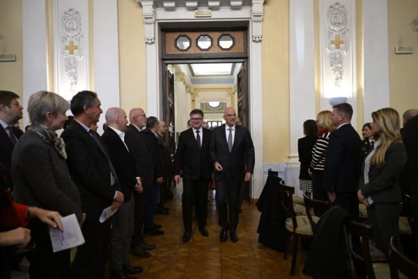 Σε αυτό το σημείο, θέλω να συγχαρώ κάποιον που βρίσκεται σήμερα εδώ ανάμεσά μας. Αναφέρομαι στον αγαπητό φίλο Μιροσλάβ Λάιτσακ, ο οποίος προσπαθεί να φέρει σε πέρας μια πολύ δύσκολη αποστολή, όπως του έλεγα πριν μπούμε στην αίθουσα. Ο Μίροσλαβ είναι Ειδικός Αντιπρόσωπος της Ε.Ε. για τον διάλογο Βελιγραδίου – Πρίστινας και άλλα θέματα της περιοχής των Δυτικών Βαλκανίων. Και θέλω να τον συγχαρώ για τις προσπάθειές του σε αυτή την πολύ απαιτητική και περίπλοκη αποστολή. Και φυσικά του ευχόμαστε όλοι κάθε επιτυχία.