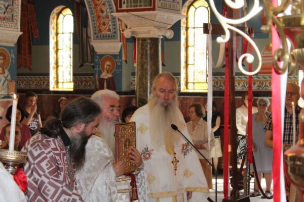 Οι πιστοί κρατώντας τις αποστάσεις υπομονετικά εντός κι εκτός του ναού συμμετείχαν στην Θεία Λειτουργία κοινωνώντας το Σώμα και το Αίμα του Κυρίου μας.