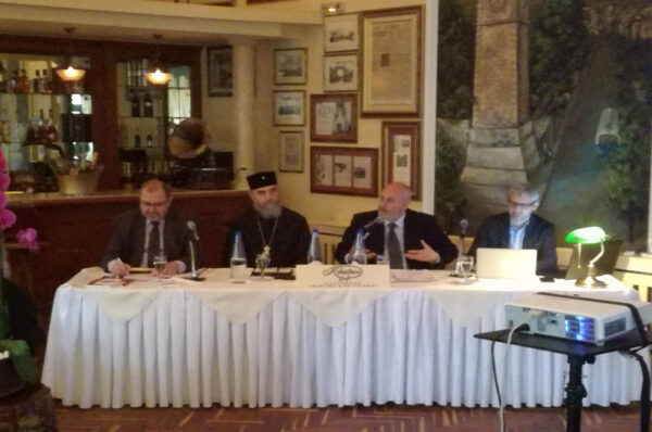 Στη συνέχεια, ο κ. Γεωργακόπουλος, μέσα από την προβολή οπτικοακουστικού υλικού, έκανε αναφορά στην έρευνα που διενεργεί το εν λόγω Περιοδικό για θέματα που απασχολούν τους Έλληνες πολίτες, σχετικά με την επικαιρότητα. Ο κ. Γεωργακόπουλος, τόνισε πως μαζί με την ειρήνη, κατοχυρώθηκε και η Δημοκρατία στην Ευρώπη, αναφέροντας τις κατακτήσεις των Κρατών μελών της Ε.Ε.: την ειρήνη, τη Δημοκρατία, τη χρηματοδότηση της Ε.Ε. προς τα Κράτη-μέλη, την Ευρωπαϊκή Νομοθεσία (η οποία κατοχύρωσε εργασιακά δικαιώματα, κανόνες για την ασφάλεια των παιδιών κ.ά.), την ανάπτυξη και την ελευθερία. Ο κ. Γεωργακόπουλος έθεσε το ερώτημα: «Ποιός ο ρόλος μας σε όλα αυτά;», δίδοντας τη σκυτάλη στον Δρα Ζορμπά, ο οποίος υπογράμμισε την προσφορά και τη δράση της Εκκλησίας στα κοινωνικά δρώμενα και στις πολιτικές εξελίξεις, κάνοντας παράλληλα αναφορά στο Άρθρο 17 της Συνθήκης της Λισαβόνας, το οποίο κατοχυρώνει πως σε θεσμικό επίπεδο η Εκκλησία καλείται να εκφράσει τη γνώμη της.