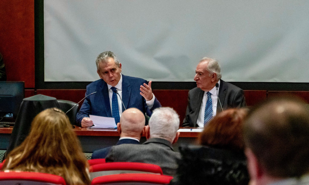 Τον επικεφαλής της ΔΣΟ παρουσίασε στο ακροατήριο ο Πρόεδρος του Τμήματος Θεολογίας του Πανεπιστημίου Λευκωσίας, τ. Πρόεδρος και Κοσμήτορας της Θεολογικής Σχολής του ΑΠΘ, κ. Χρήστος Οικονόμου.