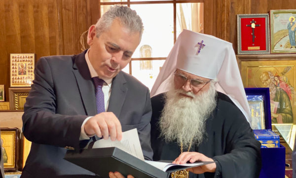 Μετά τη Θεία Λειτουργία, ο Μητροπολίτης υποδέχθηκε θερμά την αντιπροσωπεία στα γραφεία του Ορθόδοξου Κέντρου. Ο Μάξιμος Χαρακόπουλος ενημέρωσε τον ιεράρχη της ρωσικής εκκλησίας για τις πολυσχιδείς δράσεις της ΔΣΟ, με τον κ. Βικέντιο να εκφράζει την ικανοποίησή του για την ύπαρξη ενός τέτοιου διακοινοβουλευτικού Οργάνου με επίκεντρο τις αξίες της Ορθόδοξης πίστης, ενώ δήλωσε την υποστήριξή του στις πρωτοβουλίες του θεσμού.