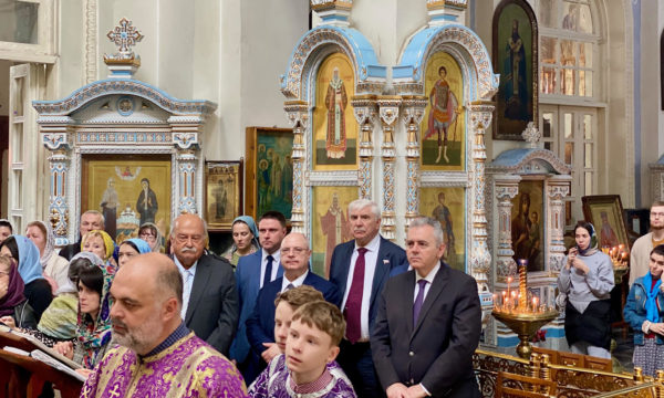 Νωρίτερα, ο επικεφαλής της ΔΣΟ, συνοδευόμενος από τον Σύμβουλο δρ. Κώστα Μυγδάλη, καθώς και τα μέλη της ρωσικής κοινοβουλευτικής αντιπροσωπείας στην Διακοινοβουλευτική Ένωση (IPU), κ. Σεργκέι Γκαβρίλοφ και κ. Αλεξέι Τσέπα, συμμετείχαν στη Θεία Λειτουργία επί τη εορτή του Αγίου Τύχωνα, Πατριάρχου Μόσχας, στον Καθεδρικό Ναό του Ορθόδοξου Κέντρου της Ρωσικής Εκκλησίας στην Τασκένδη.
