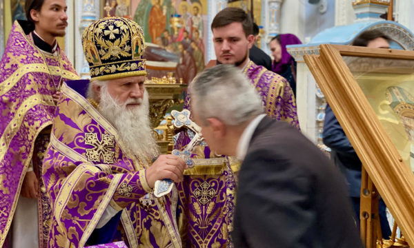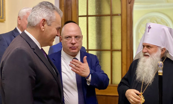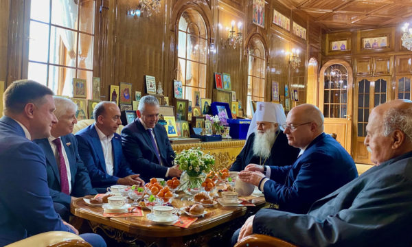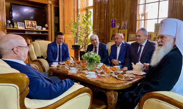 Μετά τη Θεία Λειτουργία, ο Μητροπολίτης υποδέχθηκε θερμά την αντιπροσωπεία στα γραφεία του Ορθόδοξου Κέντρου. Ο Μάξιμος Χαρακόπουλος ενημέρωσε τον ιεράρχη της ρωσικής εκκλησίας για τις πολυσχιδείς δράσεις της ΔΣΟ, με τον κ. Βικέντιο να εκφράζει την ικανοποίησή του για την ύπαρξη ενός τέτοιου διακοινοβουλευτικού Οργάνου με επίκεντρο τις αξίες της Ορθόδοξης πίστης, ενώ δήλωσε την υποστήριξή του στις πρωτοβουλίες του θεσμού.