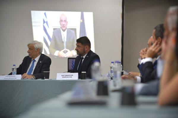 «Η Ελλάδα, η Ελλάδα μας, ως συνήθως, βρίσκεται κοντά στο «μάτι του κυκλώνα». Αλλά το πεπρωμένο του Ελληνισμού ανά τους αιώνες καθορίζεται πάντα από την ικανότητά μας να παραμένουμε ενωμένοι, να προσαρμοζόμαστε και κυρίως να υπερισχύουμε. Είμαι πεπεισμένος ότι, παρά τις εξαιρετικά σοβαρές προκλήσεις των καιρών μας, η αλληλεγγύη, η αποφασιστικότητα και η προσήλωσή μας στο κράτος δικαίου θα μας επιτρέψουν, για άλλη μία φορά να σταθούμε στο ύψος των μεγάλων προκλήσεων, στο ύψος των παγκόσμιων περιστάσεων», τόνισε μεταξύ άλλων ο κ. Χαρδαλιάς.