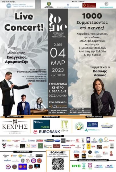 Η Συμφωνική Ορχήστρα Νέων Ελλάδος – Youth Symphony Orchestra of Greece πραγματοποιεί στην Θεσσαλονίκη, το Σάββατο 4 Μαρτίου 2023, Συνεδριακό Κέντρο ”Ι. Βελλίδης”, την εναρκτήρια φιλανθρωπική συναυλία της, μετά την πανδημία.
