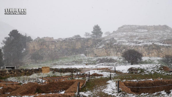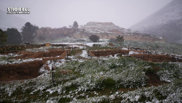 Χιονόπτωση στον αρχαιολογικό χώρο των Μυκηνών