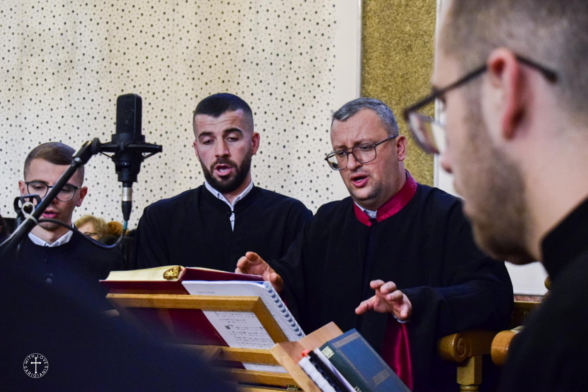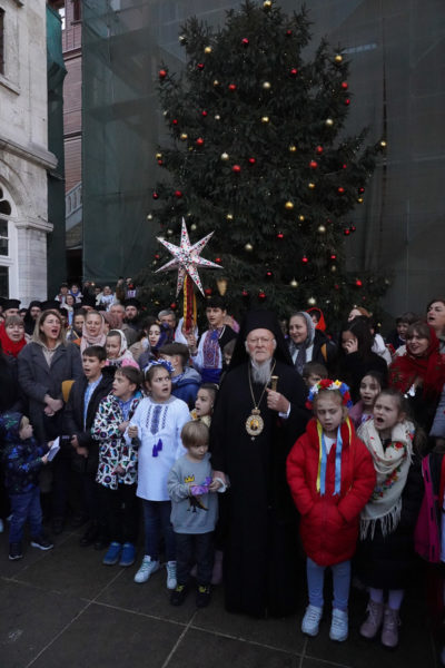 Μετά τη Θ. Λειτουργία, στον αυλόγυρο του Πατριαρχείου, μέλη της Ουκρανικής παροικίας της Πόλεως και προσκυνητές από την Ουκρανία έψαλαν τα παραδοσιακά τους κάλαντα στον Πατριάρχη.