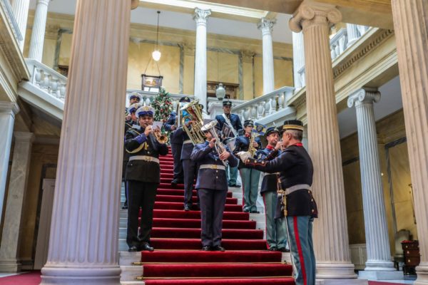 Η Μπάντα των Ενόπλων Δυνάμεων και η Προεδρική Φρουρά έψαλαν τα κάλαντα Χριστουγέννων στην Πρόεδρο της Δημοκρατίας Κατερίνα Σακελλαροπούλου.