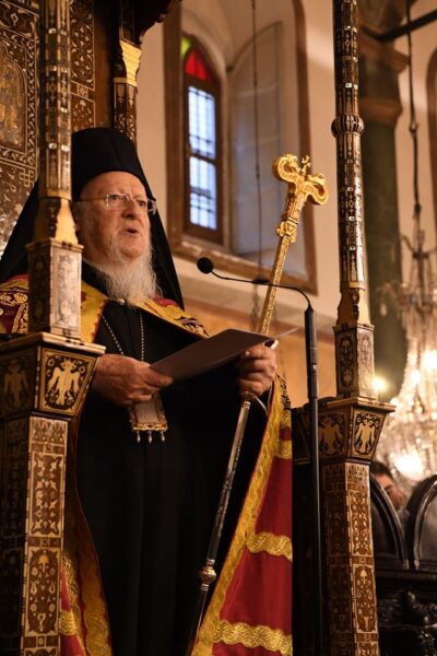 “Και μετά, η μακρά Πατριαρχία, εις διαδοχήν του σεμνού, ταπεινού, καλού καγαθού Πατριάρχου Δημητρίου του από Ίμβρου και Τενέδου, τον οποίον με προθυμίαν, υιικήν στοργήν και ευγνωμοσύνην διηκονήσαμεν καθ᾽ όλην την εικοσαετή Πατριαρχείαν του. Ας αναπαύεται εις τους ουρανίους λειμώνας μετά των αγίων και των δικαίων, διότι άγιος και δίκαιος υπήρξε και ο ίδιος εις όλην του την ζωήν. Ανεξίκακος και ανεπιτήδευτος. Γνήσιος, αυθεντικός και ατόφιος. Και ο ομιλών και όλοι ας έχουμε την ευχήν του. Η μακρά, λοιπόν, Πατριαρχία μας. Με τόσες ευλογίες! Ας επιτραπή να αναφέρωμεν μερικούς σταθμούς εκ της περιπετειώδους εξελίξεως και πορείας της. Υπήρξε – και είναι – διαρκής η ευγνωμοσύνη προς τον ούτω τα καθ᾽ ημάς οικονομήσαντα Κύριον της δόξης: Διά το ομόφωνον της εκλογής. Διά το γεγονός ότι αμφότεροι οι γεννήτορες ημών ηυμοίρησαν να ιδούν την μεγάλην δι᾽ αυτούς ημέραν εκείνην. Διά την αρμονικήν συνεργασίαν με τους κατά καιρούς αδελφούς και συνεργούς Ιεράρχας. Διά τας απ᾽ αρχής καθιερωθείσας Συνάξεις των Προκαθημένων των Ορθοδόξων Εκκλησιών, αλλά και δι᾽ εκείνας της σεβασμίας Ιεραρχίας του Θρόνου. Διά την συνέχισιν της προετοιμασίας της Αγίας και Μεγάλης Συνόδου και τελικώς την πραγματοποίησίν της εν Κρήτη προ τετραετίας περίπου. Διά τας επισκέψεις ημών εις όλας σχεδόν τας αδελφάς Αυτοκεφάλους Εκκλησίας και εις τας πλείστας των Επαρχιών του Θρόνου. Διά την συμμετοχήν εις πλείστα συνέδρια ποικίλου περιεχομένου, με πλέον πρόσφατα τα του Davos και του Abu Dhabi, όπου πάντοτε προσεπαθήσαμεν να κάμωμεν ακουστήν την φωνήν της Ορθοδοξίας και να δώσωμεν την μαρτυρίαν του πανσέπτου Οικουμενικού Θρόνου. Διά την διεύρυνσιν της Αγίας και Ιεράς Συνόδου με την δυνατότητα συμμετοχής και προσφοράς εις το έργον της διοικήσεως της Εκκλησίας όλων ανεξαιρέτως των εν ενεργεία Ιεραρχών της πρωτοθρόνου ημών Εκκλησίας. Διά την εκλογήν και ανάδειξιν πλειάδος εκλεκτών αρχιερέων κοσμούντων και διακονούντων την Εκκλησίαν από διαφόρων διοικητικών, ακαδημαικών και άλλων επάλξεων, διά τους οποίους σεμνύνεται η Μήτηρ Εκκλησία. Διά την ενσυνείδητον και πρόθυμον προώθησιν των διαχριστιανικών και διαθρησκειακών διαλόγων, αποτελούντων συμβολήν εις την παγκόσμιον ειρήνην, καταλλαγήν και αλληλεγγύην. Διά την ίδρυσιν νέων επαρχιών του Θρόνου. Διά τα πολλά ευλαβικά προσκυνήματα και κατανυκτικά τρισάγια εις εσβεσμένας λυχνίας της Μικράς Ασίας και της Ανατολικής Θράκης μετά μίαν ολόκληρον εκατονταετίαν αναγκαστικής σιωπής. Διά την συμβολήν εις την ανάπτυξιν οικολογικής συνειδήσεως, τοσούτον αναγκαίας, εάν κρίνωμεν από την μαστίζουσαν σήμερον την ανθρωπότητα σχετικήν κρίσιν και την λίαν επικίνδυνον κλιματικήν αλλαγήν. Διά τον γόνιμον διάλογον με τον σύγχρονον κόσμον και την καλήν μαρτυρίαν της Μεγάλης Εκκλησίας ενώπιον των σημείων των καιρών, μαρτυρίαν εμπιστοσύνης εις την πρόνοιαν του Θεού, αλλά και εις την δύναμιν της ελευθερίας του ανθρώπου”.