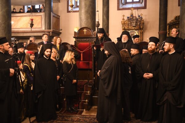 Προηγουμένως τον Παναγιώτατο προσφώνησαν ο Επίσκοπος Μαργκβέτι και Ουμπίσα Μελχισεδέκ, από το Πατριαρχείο Γεωργίας, μεταφέροντας τον αδελφικό χαιρετισμό και αναμνηστικό δώρο του Μακαριωτάτου Αρχιεπισκόπου Μετσχέτης και Τιφλίδος και Καθολικού Πατριάρχου πάσης Γεωργίας και Μητροπολίτου Μπιτσβίνθας και Σουχουμίου-Αμπχαζίας Ηλία Β’, καθώς και ο Αρχιεπίσκοπος Πολτάβας και Κρεμεντσούκ Θεόδωρος, επικεφαλής Αντιπροσωπείας της Εκκλησίας της Ουκρανίας, ο οποίος ανέγνωσε το ευχετήριο γράμμα του Μακαριωτάτου Μητροπολίτου Κιέβου και πάσης Ουκρανίας Επιφανίου.