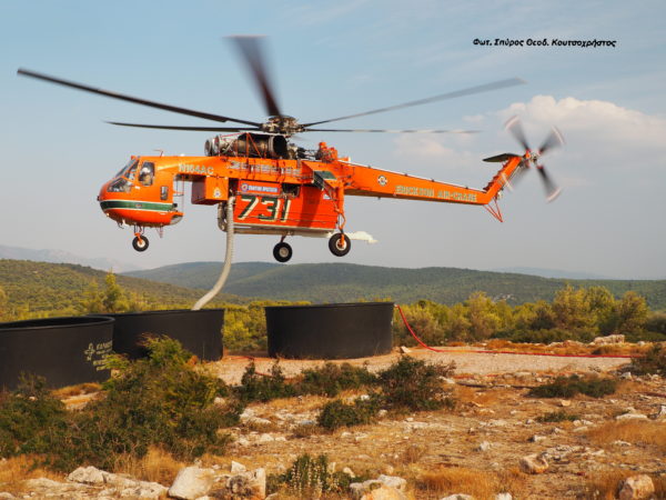 Η χρήση γλυκού νερού κατά την αεροπυρόσβεση είναι πλεονέκτημα, καθώς ελαχιστοποιεί τις περιβαλλοντικές επιπτώσεις. Στην κατάσβεση της μεγάλης δασικής πυρκαγιάς, που ξεκίνησε από το χωριό Βίλια Αττικής την Δευτέρα 16 Αυγούστου, είχαν εμπλοκή και ελικόπτερα διαφόρων τύπων.