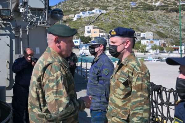 Ο Αρχηγός ΓΕΕΘΑ Στρατηγός Κωνσταντίνος Φλώρος, στο πλαίσιο των σημερινών επισκέψεων στην περιοχή, είχε συνάντηση με τα στελέχη του κινητού διακλαδικού υγειονομικού κλιμακίου στην Κανονιοφόρο ΝΙΚΗΦΟΡΟΣ, κατά την ολοκλήρωση της πρώτης αποστολής της νέας δράσης «Υγειονομική Μέριμνα για όλους από τις Ένοπλες Δυνάμεις».