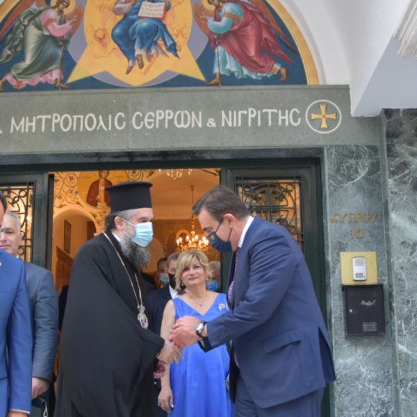 Τον Σεβ. Μητροπολίτη Σερρών και Νιγρίτης κ. Θεολόγο επισκέφθηκε το απόγευμα, 26 Ιουνίου 2021, o Αντιπρόεδρος της Ευρωπαϊκής Επιτροπής κ. Μαργαρίτης Σχοινάς, στο πλαίσιο της ανακηρύξεώς του, από τον Δήμο Σερρών, ως επιτίμου Δημότου της πόλεως των Σερρών.