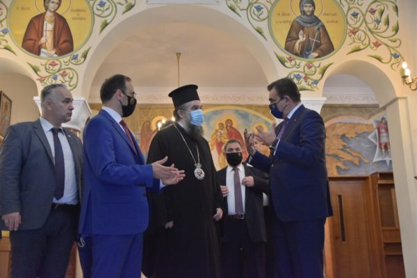 Ο Σεβασμιώτατος δέχθηκε εγκαρδίως τον κ. Σχοινά, στο Επισκοπείο Σερρών, συνοδευόμενο από τον Βουλευτή Σερρών κ. Θ. Λεονταρίδη, τον Δήμαρχο Σερραίων κ. Αλ. Χρυσάφη, τον Πρόεδρο του Δημοτικού Συμβουλίου Σερρών κ. Β. Κατιρτζόγλου, Αντιδημάρχους και λοιπούς υπηρεσιακούς παράγοντες και συζήτησε σε κλίμα αμοιβαίας κατανοήσεως ζητήματα επικαιρότητος, κοινού ενδιαφέροντος και προβληματισμού, όπως αυτό της πανδημίας, του μεταναστευτικού και της παρουσίας της ορθόδοξης Εκκλησίας στο ευρωπαϊκό γίγνεσθαι. Ο Σεβασμιώτατος τόνισε ότι, σύμφωνα με την ιδρυτική διακήρυξη των ευρωπαϊκών κοινοτήτων, ο πολιτισμός της Ευρώπης και η κοινή της μαρτυρία εδράζεται σε τρεις βασικούς πυλώνες, του αρχαίου δηλαδή ελληνικού πνεύματος, του νομικού πολιτισμού της αρχαίας Ρώμης και της χριστιανικής πίστεως.