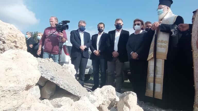 Από την πλευρά του ο Μητροπολίτης Αρκαλοχωρίου, Καστελλίου και Βιάννου κ. Ανδρέας αναφέρθηκε στη σπουδαιότητα του ναού για τη περιοχή και ευχαρίστησε την Υπουργό για την επίσκεψή της και τη δέσμευσή της να αποκατασταθεί άμεσα.