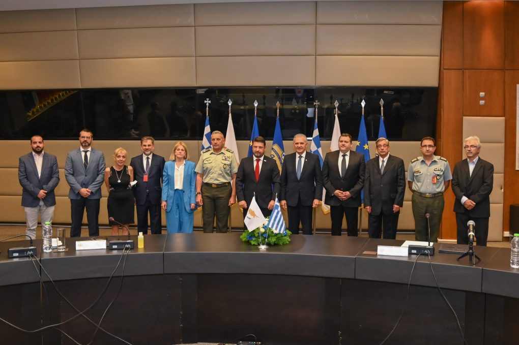 Στη σύσκεψη συμμετείχαν ο Επίτροπος Προεδρίας της Κυπριακής Δημοκρατίας κ. Φώτης Φωτίου, ο Αρχηγός ΓΕΕΘΑ Στρατηγός Κωνσταντίνος Φλώρος, ο Πρέσβης της Κύπρου στην Ελλάδα κ. Κυριάκος Κενεβέζος, η Διευθύντρια της Διεύθυνσης Κύπρου Α2 του Υπουργείου Εξωτερικών της Ελλάδας Πληρεξούσιος Υπουργός Α΄ κ. Δέσποινα Λουρμπάκου, ο Διευθυντής της Διεύθυνσης Κυπριακού & Τουρκίας του Υπουργείου Εξωτερικών της Κύπρου κ. Σπύρος Αττάς, η Λειτουργός της Διεύθυνσης Κυπριακού & Τουρκίας του Υπουργείου Εξωτερικών της Κύπρου κ. Ελένη Τζιωρτζή και ανώτερα στελέχη των Υπουργείων Εξωτερικών και Άμυνας Ελλάδας και Κύπρου.