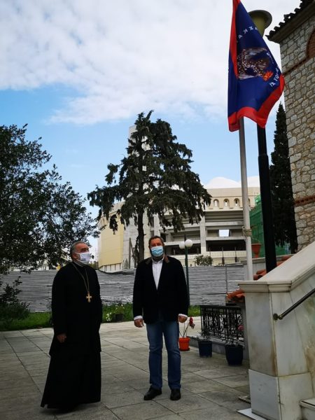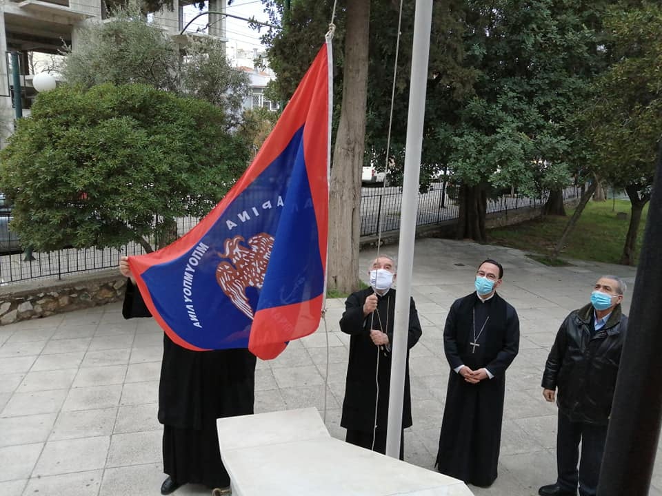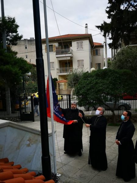 Την έπαρση έκανε, με την ευλογία του Σεβ. Μητροπολίτου Ν. Ιωνίας και Φιλαδελφείας κ. Γαβριήλ, ο Γενικός Αρχιερατικός Επίτροπος της Ιεράς Μητροπόλεως πλαισιούμενος από τους συν εφημερίους του και Συνεργάτες του Ιερού Ναού.