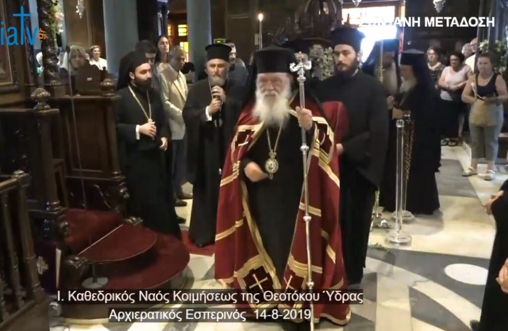 Παρακολουθήστε σε απευθείας σύνδεση τον Πανηγυρικό από τον Καθεδρικό Ναό Κοιμήσεως της Θεοτόκου Ύδρας, χοροστατούντος του Μακαριωτάτου Αρχιεπισκόπου Αθηνών κ.κ. Ιερωνύμου.