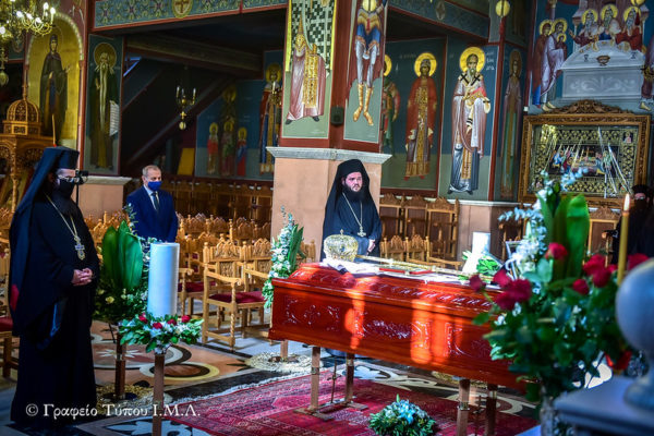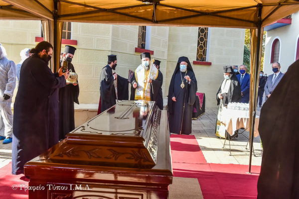 Εξαιτίας των περιοριστικών μέτρων που υφίστανται, την Εξόδιο τέλεσε ο τοποτηρητής της Μητροπόλεως, Σεβ. Μητροπολίτης Σερρών και Νιγρίτης κ. Θεολόγος. Παρευρίσκονταν ως εκπρόσωπος του Οικουμενικού Πατριαρχείου ο Σεβ. Μητροπολίτης Μετρών και Αθύρων κ. Δημήτριος, ο υφ. Εσωτερικών (Μακεδονίας – Θράκης) κ. Θεόδωρος Καράογλου, ο Δήμαρχος Λαγκαδά, ενώ εκ μέρους της Ιεράς Συνόδου της Εκκλησίας της Ελλάδος εκφώνησε τον επικήδειο λόγο ο Πανοσιολ. Αρχιμανδρίτης κ. Δωρόθεος Πάπαρης, Α’ Γραμματεύς Αυτής.