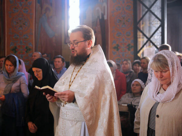 Его Высокопреосвященству сослужили наместник Высоко-Петровского монастыря игумен Петр (Еремеев) и благочинный обители иеромонах Матфей (Мунтяну).