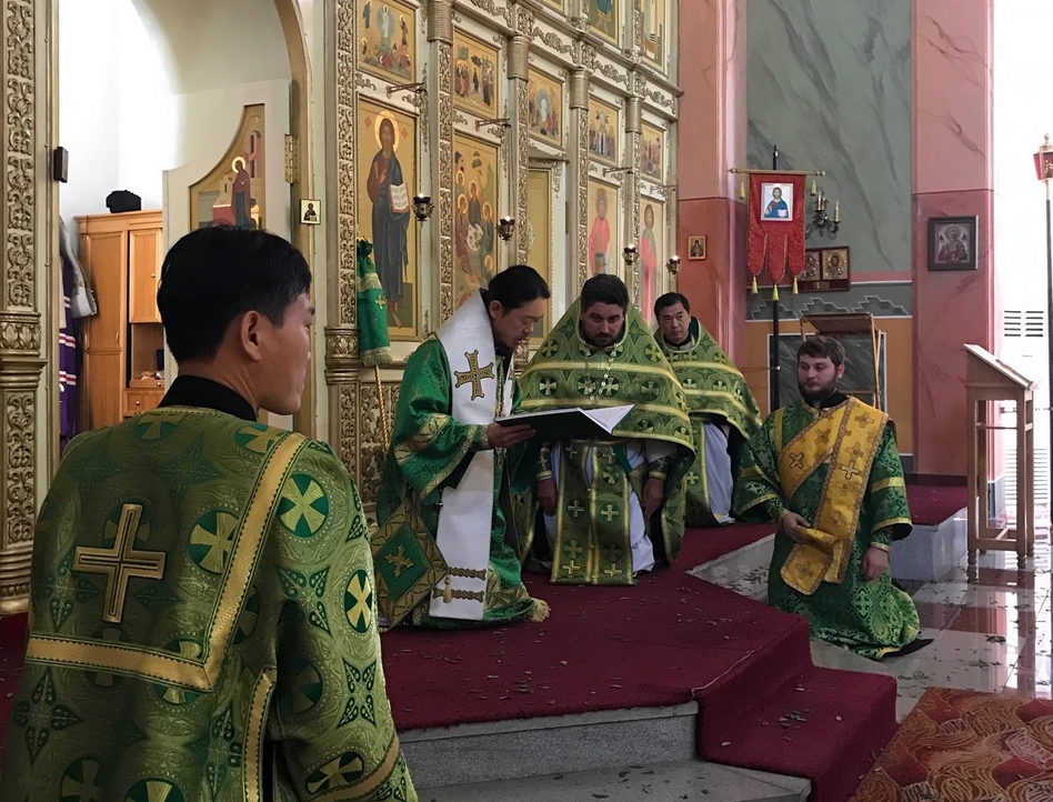 16 июня 2019 года, когда Православная Церковь празднует день сошествия Святого Духа на апостолов, ставший днем основания христианской Церкви, в Троицком храме в столице Корейской Народно-Демократической Республики отметили престольный праздник. Богослужение возглавил архиепископ Корейский Феофан; владыке сослужили настоятель Троицкого храма Пхеньяна священник Феодор Ким, клирик Владивостокской митрополии иерей Георгий Пынтя, клирик храма Святой Троицы в Пхеньяне иерей Владимир Чжан, клирик Кызыльской епархии протодиакон Алексий Паршуков и клирик пхеньянского храма диакон Павел Пак.