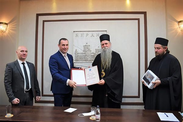Предсједник општине Беране Драгослав Шћекић уручио је данас, уз поштовање епидемиолошких мјера, Њ. П. Епископу будимљанско-никшићком и администратору Митрополије црногорско-приморске, г. Јоаникију највише општинско признање – награду „21. јул“.