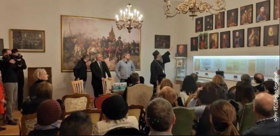 После изложбе у рефекторију, прешло се у салу на четвртом спрату Црквене општине, где је одржана бечка промоција трилогије о Немањићима аутора Владимира Кецмановића и Дејана Стојиљковића.